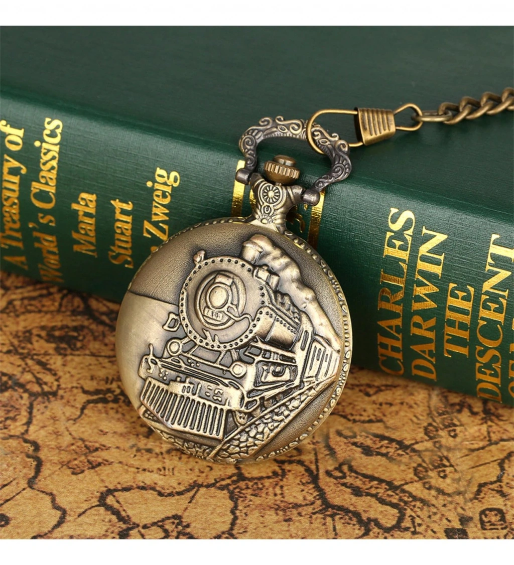 Tren Temalı Köstekli Saat, nostaljik tasarımı ve detaylı işlemeleri ile vintage saat severler için özel olarak üretilmiştir. Kapağında detaylı bir buharlı tren kabartması bulunan bu zarif cep saati, antik bronz renkte olup retro havasını tamamlar. Büyük rakamlı kadranı sayesinde kolay okunabilir. Zincirli yapısıyla şık bir aksesuar olarak kullanılabilir. Koleksiyoncular ve klasik saat tutkunları için ideal bir parçadır.Paket İçeriği1 Adet Tren Temalı Köstekli Saat