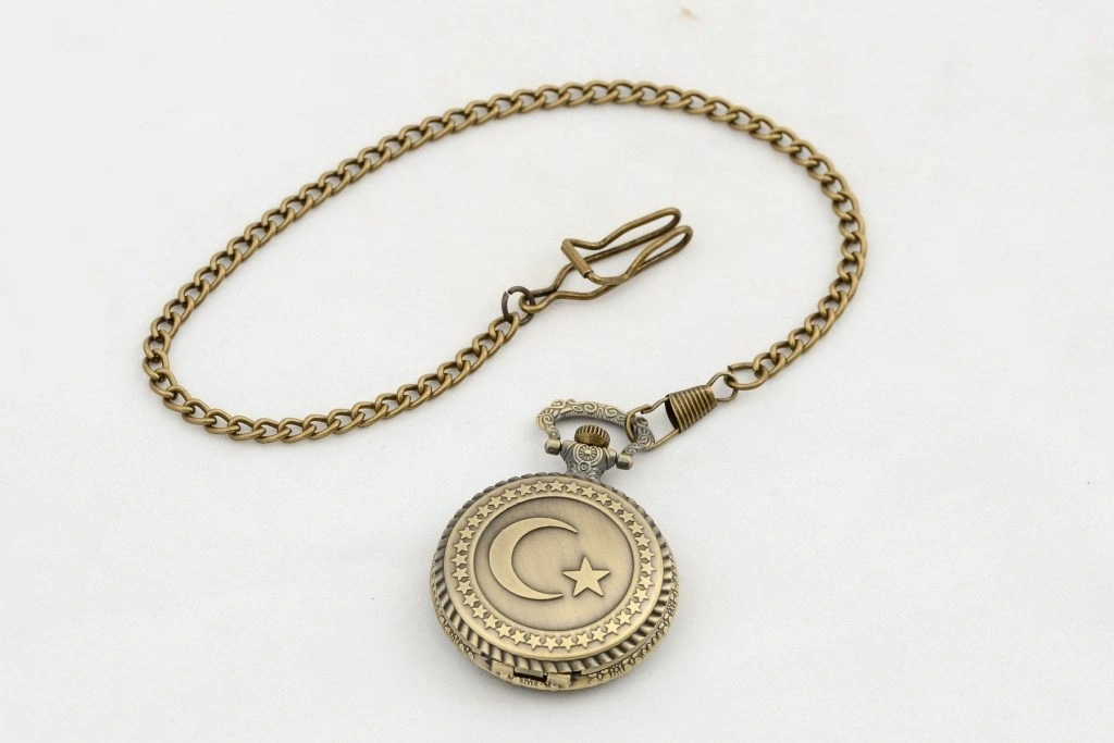 Türk bayraklı köstekli saat, nostaljik tasarımı ve detaylı işçiliği ile klasik saat severler için şık bir aksesuardır. Metal gövdeye sahip olup, kapağında ay ve yıldız motifi yer almaktadır. Zincirli yapısı sayesinde cepte taşınabilir ve özel günlerde kullanıma uygundur. Antik bronz renkli kaplama, saate vintage bir hava katar. Hem koleksiyonluk bir obje hem de anlamlı bir hediye alternatifi olarak tercih edilebilir.Paket İçeriği1 adet Türk Bayraklı Köstekli Saat