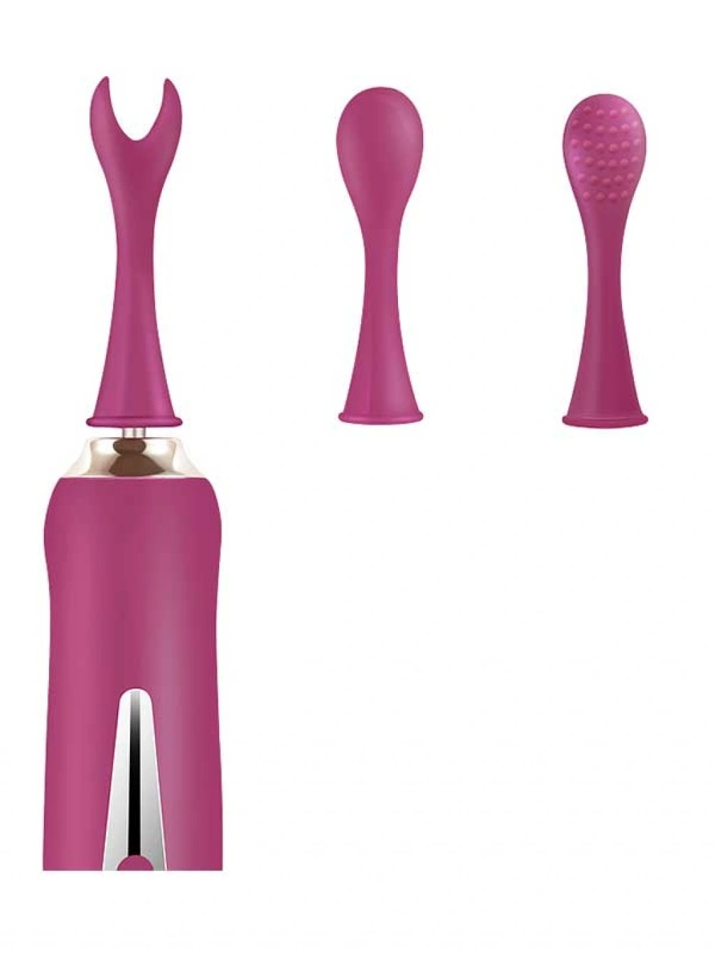 Üç Başlıklı Değiştirilebilir Vibratör Mor 18*3.4 cm boyutlarındadır. 3 farklı hız ve 7 farklı titreşim mdou vardır. USB kablo ile şarj edilir.