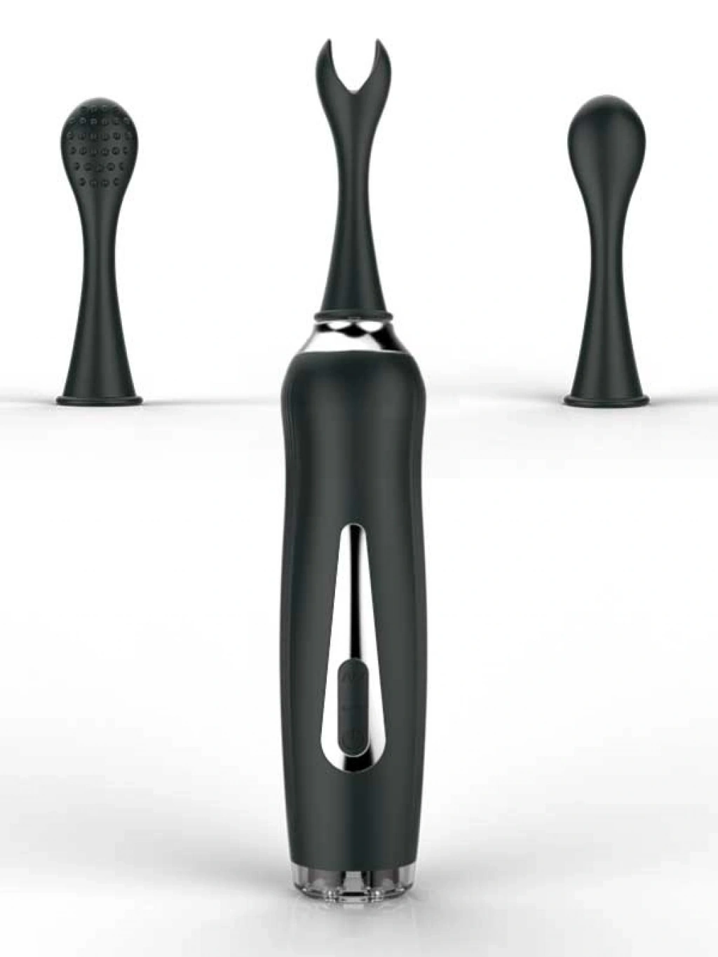Üç Başlıklı Değiştirilebilir Vibratör Siyah 18*3.4 cm boyutlarındadır. 3 farklı hız ve 7 farklı titreşim mdou vardır. USB kablo ile şarj edilir.