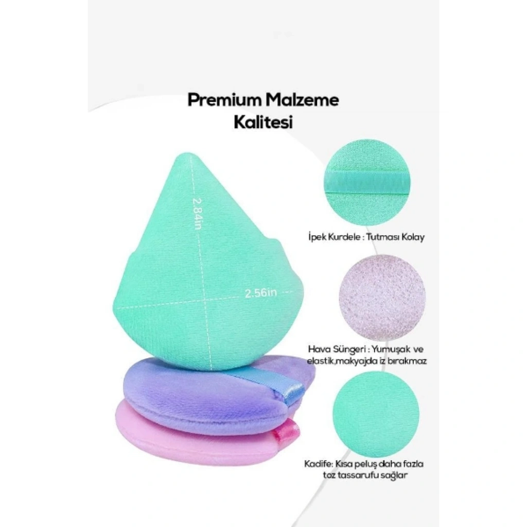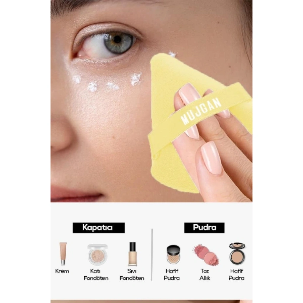Üçgen makyaj süngeri puf, ten makyajını daha kontrollü ve pratik şekilde uygulamak için tasarlanmış çok yönlü bir makyaj aksesuarıdır. Özel üçgen formu sayesinde göz çevresi, burun kenarları ve çene gibi detaylı bölgelerde hassas uygulama imkânı sunar. Sivri uç kısmı dar alanlara kolayca ulaşırken, geniş ve dairesel yüzeyi yanaklar, alın ve diğer geniş bölgelerde fondötenin eşit şekilde dağıtılmasına yardımcı olur. Üçgen makyaj süngeri tasarımı sayesinde hem detay hem de geniş alan uygulamalarında tek ürünle etkili sonuç elde edilebilir. Yumuşak dokulu yüzeyi cilt üzerinde konforlu bir kullanım sunar ve makyajın daha pürüzsüz görünmesine katkı sağlar. Arka kısmında bulunan elastik bant sayesinde ele rahatça oturur ve kontrollü kullanım imkânı verir. Puf makyaj süngeri yapısı ile ürünün her iki tarafı da kullanılabilir, bu sayede pratik ve uzun süreli kullanım sağlar. Günlük makyajdan profesyonel uygulamalara kadar farklı ihtiyaçlara uygun olan detay uygulama makyaj süngeri, makyaj çantanızın vazgeçilmez yardımcılarından biri olmaya adaydır. Ürün Teknik Özellikleri Özellik Açıklama Ürün Adı Üçgen Makyaj Süngeri Puf Malzeme Yumuşak makyaj süngeri materyali Renk Görseldeki renklerden karışık gönderim Kullanım Alanı Fondöten ve ten makyajı uygulaması Paket İçeriği1 adet üçgen makyaj süngeri puf