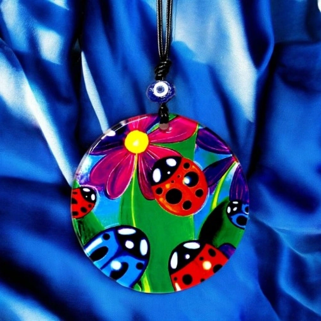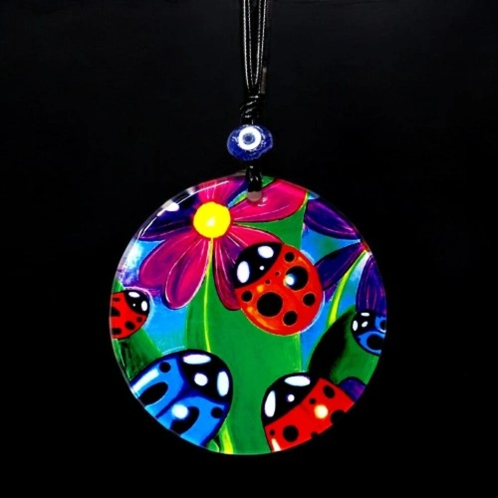 VipMarketim Uğur Böcekli Cam Duvar Dekoru Hediyelik Süs