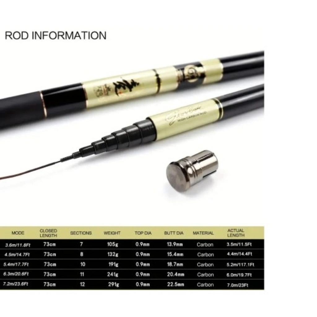 Yüksek Teknoloji Malzeme: Karbonfiber ve cam kompozit yapısı sayesinde kamış, süper hafif bir ağırlığa ve mükemmel dengeye sahiptir. Bu sayede uzun süreli kullanımlarda bile kol yorgunluğunu minimuma indirir.Kompakt ve Taşınabilir: Geri çekilebilir (teleskobik) tasarımı ile kapalı haldeyken oldukça az yer kaplar. Seyahatlerinizde, kamp gezilerinizde veya günlük yürüyüşlerinizde ağırlık yapmadan yanınızda taşıyabilirsiniz.5 Boğumlu Güçlü Gövde: 2.40 metre uzunluğundaki 5 boğumlu yapısı, büyük balıklarla mücadele ederken basıncı tüm gövdeye yayarak kırılma riskini azaltır.Ergonomik Tasarım: Teleskobik sap tasarımı, farklı tutuş pozisyonlarına uyum sağlar ve atış mesafenizi artırmanıza yardımcı olur.Çok Yönlü Kullanım: Tuzlu su (deniz) ve tatlı su (göl, nehir, havuz) balıkçılığı için tam uyumludur. Spin, hafif surf veya genel kullanım için idealdir.Kullanım AvantajlarıHassasiyet: Karbonfiber yapısı su altındaki en küçük titreşimleri bile hissetmenizi sağlayarak balık vuruşlarını kaçırmanızı önler.Dayanıklılık: Paslanmaya karşı dirençli halkaları ve dayanıklı dış yüzeyi ile uzun ömürlü kullanım vaat eder.Hızlı Kurulum: Saniyeler içinde açılıp kullanıma hazır hale gelir, av sürenizi artırır.Teknik BilgilerMalzeme: Yüksek Yoğunluklu Karbonfiber & Cam KompozitUzunluk: 2.40 mBoğum Sayısı: 5 BoğumTip: Teleskobik (İç içe geçmeli)Ağırlık: Ultra Hafif SegmentPaket İçeriği1 Adet Ultra Hafif Karbonfiber Teleskobik Olta Kamışı (2.40 m)