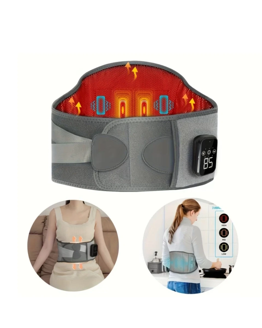 Isıtmalı bel masaj kemeri, modern tasarımı ile hem konfor hem işlevsellik sunar. Günlük kullanım için geliştirilmiş ergonomik yapısı sayesinde bel bölgesine tam oturur.Üç kademeli ısı ayarı ile farklı sıcaklık seçenekleri sunar. Masaj modları kas gevşemesine yardımcı olur.Kablosuz kullanım sayesinde ofiste, evde veya seyahatte rahatlıkla kullanılabilir.2000mAh batarya kapasitesi ile uzun süreli performans sunar. USB şarj desteği ile kolay kullanım sağlar.Otomatik zamanlayıcı özelliği ile güvenli kullanım sunar.