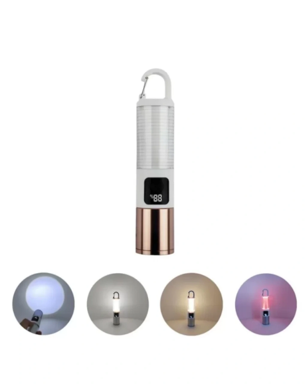 USB şarjlı kamp feneri, güçlü LED aydınlatma teknolojisi sayesinde açık hava aktivitelerinde, kamp alanlarında, karavan gezilerinde ve acil durumlarda güvenilir bir ışık kaynağı sunar. Çift ışık kaynağı teknolojisi ile donatılan bu kamp lambası hem geniş alan aydınlatması hem de odaklı ışık sağlayarak farklı kullanım ihtiyaçlarına pratik çözümler sunar. Maksimum 500 lümen parlaklık gücü sayesinde karanlık ortamlarda güçlü bir aydınlatma sağlar.Taşınabilir ve kompakt tasarımı sayesinde kolaylıkla çantanızda taşıyabilir, kamp ekipmanlarınız arasında yer verebilirsiniz. Üst kısmında bulunan askı kancası sayesinde çadır içine, ağaca veya farklı yüzeylere kolayca asılarak kullanılabilir. Bu sayede hem sabit hem de taşınabilir kullanım imkanı sunar.Ürün üzerinde bulunan dijital güç ekranı, pil seviyesini anlık olarak gösterir. Böylece cihazın ne kadar şarjı kaldığını rahatlıkla takip edebilir ve ihtiyaç duyduğunuz zaman şarj edebilirsiniz. USB şarj özelliği sayesinde powerbank, laptop, araç içi şarj veya adaptör ile kolaylıkla şarj edilebilir.Uzun pil ömrü sağlayan batarya sistemi, uzun süreli kamp kullanımlarında veya elektrik kesintilerinde güvenilir bir aydınlatma sunar. Enerji tasarruflu LED teknolojisi hem yüksek ışık performansı sağlar hem de enerji tüketimini minimum seviyede tutar.Bu çok amaçlı kamp feneri yalnızca kamp aktiviteleri için değil; elektrik kesintileri, piknikler, balıkçılık, doğa yürüyüşleri, bahçe kullanımı, karavan seyahatleri ve acil durum çantaları için de ideal bir aydınlatma çözümüdür.Dayanıklı gövde yapısı sayesinde uzun ömürlü kullanım sunar ve outdoor koşullarına uygun olarak tasarlanmıştır. Kamp severler ve doğa tutkunları için pratik, güvenilir ve güçlü bir aydınlatma ürünü olarak öne çıkar.