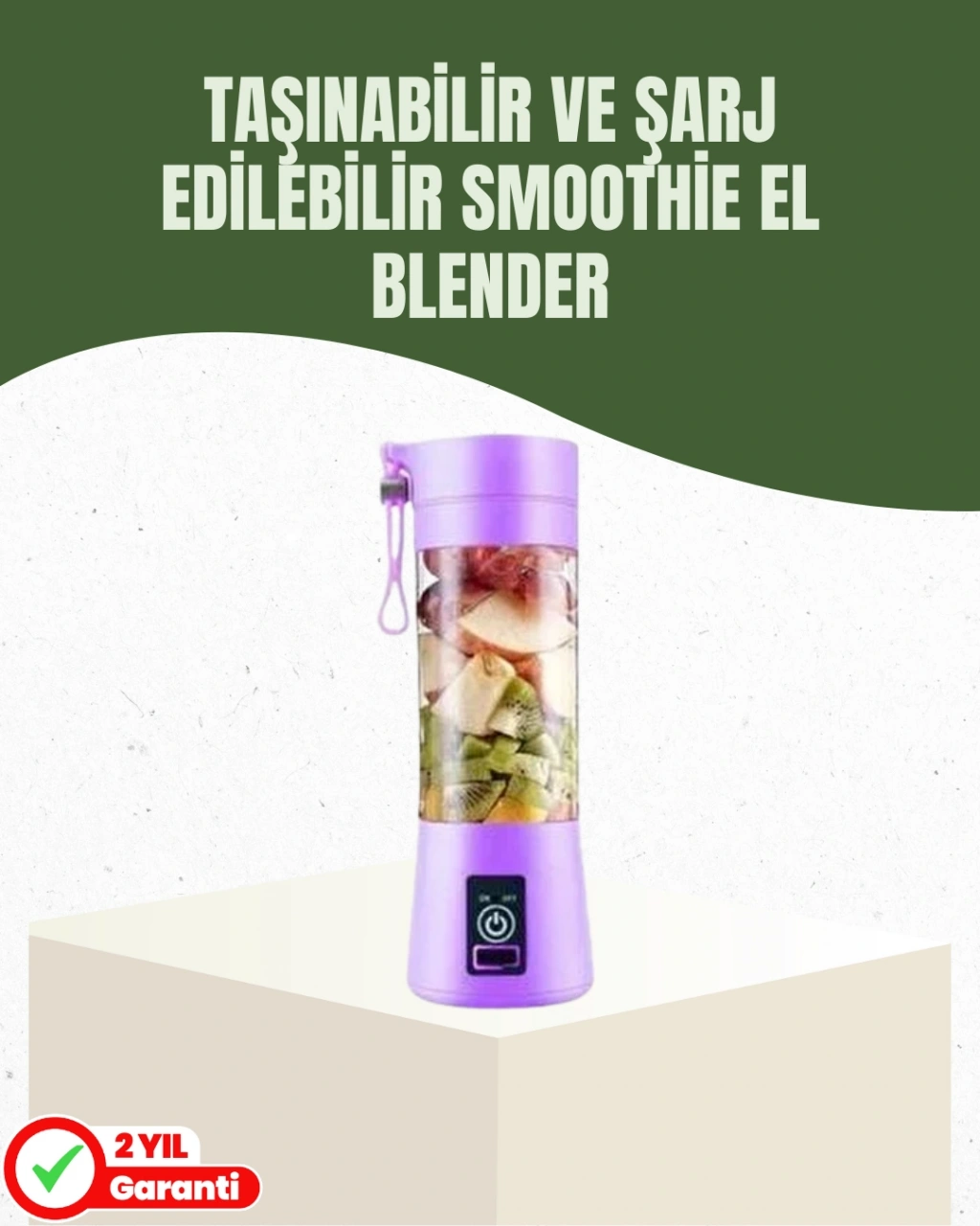 Bu portatif 380 ml smoothie blender, özellikle aktif yaşam süren kullanıcılar için tasarlanmış ultra pratik bir içecek hazırlama çözümüdür. Güne taze bir içecek ile hızlı bir başlangıç yapmak isteyenler, spor sonrası protein shake hazırlama ihtiyacı duyanlar veya bebekleri için çabucak mama hazırlamak isteyen anneler için ideal bir seçimdir.Cihaz, güçlü çelik 304 bıçakları ile donatılmıştır ve 22000 RPM seviyesindeki güçlü motoru sayesinde birçok farklı içeriği hızlıca karıştırabilir. Meyve, sebze, tohum, yulaf, protein tozu ve hatta küçük buz parçalarını bile kısa sürede karıştırarak pürüzsüz bir içecek yaratır. 380 ml haznesi hem hafif hem de kullanışlıdır.2000mAh kapasiteli bataryası, yaklaşık 3 saatlik USB şarjdan sonra 10–12 kullanımlık enerji sağlar. USB portu sayesinde powerbank, bilgisayar veya priz adaptörü ile her yerde şarj edilebilir.Kullanımı son derece güvenlidir. Cihaz yalnızca çift basma ile çalıştığı için çantada, elde veya yanlışlıkla açılmaz. Alt haznenin tam oturmaması durumunda ışık uyarısı verir. Kırmızı ışık, pil seviyesinin düşük olduğunu belirtir.Temizliği çok kolaydır: hazneye su doldurup bir damla deterjan ekleyerek çalıştırmanız yeterlidir. Ürün kendi kendini temizler ve dakikalar içinde tekrar kullanıma hazır hâle gelir.ABS gövdesi sağlam ve dayanıklıdır, taşıma ipi sayesinde elde taşımaya uygundur. İş yerinde, okulda, arabada veya spor salonunda dilediğiniz an taze içecek hazırlamanızı sağlar.