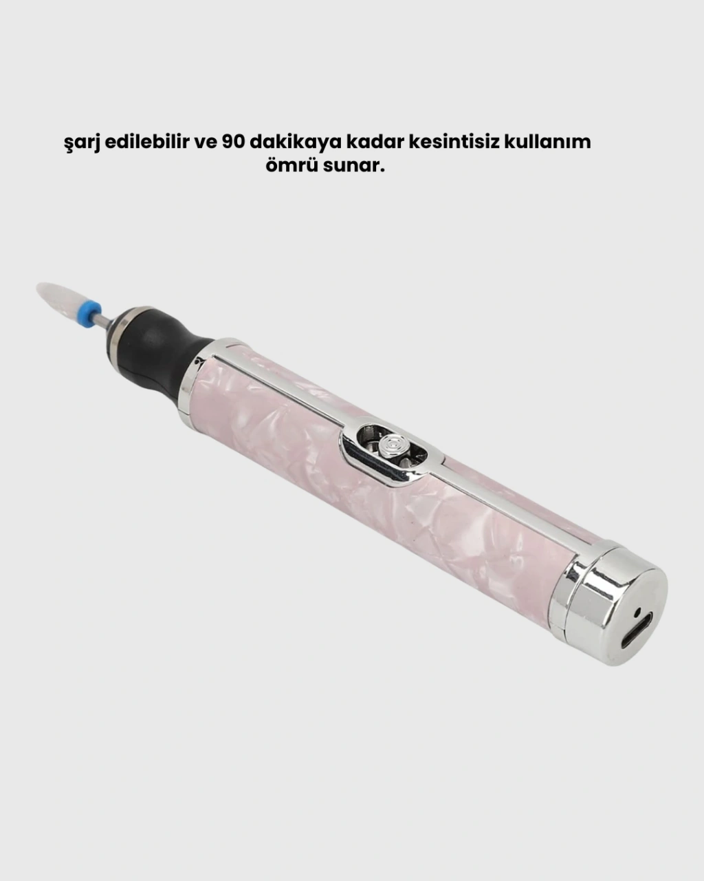 Bu elektrikli tırnak makinesi, güçlü motoru ve 20.000 RPM hız kapasitesi ile profesyonel tırnak bakımının tüm gereksinimlerini tek cihazda toplar. Jel ojeyi hızlı şekilde soyabilir, akrilik tırnakları pürüzsüzce şekillendirebilir ve doğal tırnak yüzeyini parlatabilirsiniz. 4 farklı hız kademesi sayesinde detay işlemlerden sert yüzeylere kadar tüm çalışmalara uyum sağlar. Cihazın ileri-geri dönüş özelliği, kullanım kolaylığını artırırken hassas bölgelerde daha kontrollü hareket etmenize yardımcı olur. USB şarj sistemi, evde, işte veya seyahatte pratik kullanım sunarken 500 mAh batarya uzun süreli çalışmayı destekler. Ergonomik sapı ve hafif gövdesi, işlemler sırasında ellerinizi yormaz. Profesyonel sonuçları evde almak isteyenler için ideal bir bakım aracıdır.