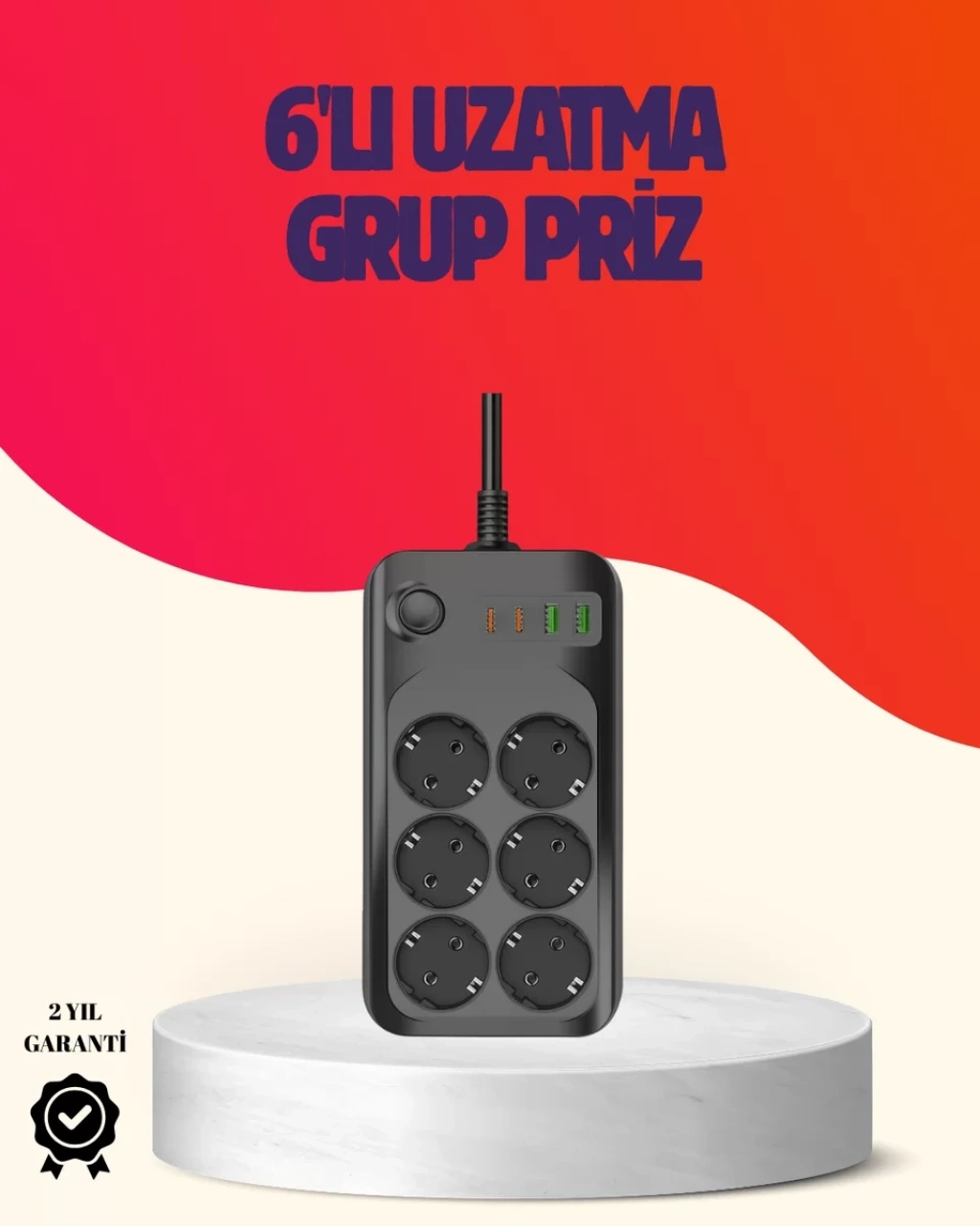 Bu termal akım korumalı 6’lı priz, güçlü cihazlarınızı aynı anda güvenli şekilde kullanmanız için tasarlanmıştır. 2500W kapasitesi sayesinde bilgisayar, TV, ses sistemi, modem, mutfak ekipmanları gibi birçok ürünü rahatça çalıştırır. USB & Type-C 2.1A çıkışları şarj adaptörü kullanmadan hızlı enerji aktarımı sağlar. Termal akım koruma teknolojisi, aşırı ısınma riskini önlerken 10A ünite voltaj dengesizliğinde koruma sunar. 2 metre kablosu, geniş alan kullanımını destekler.