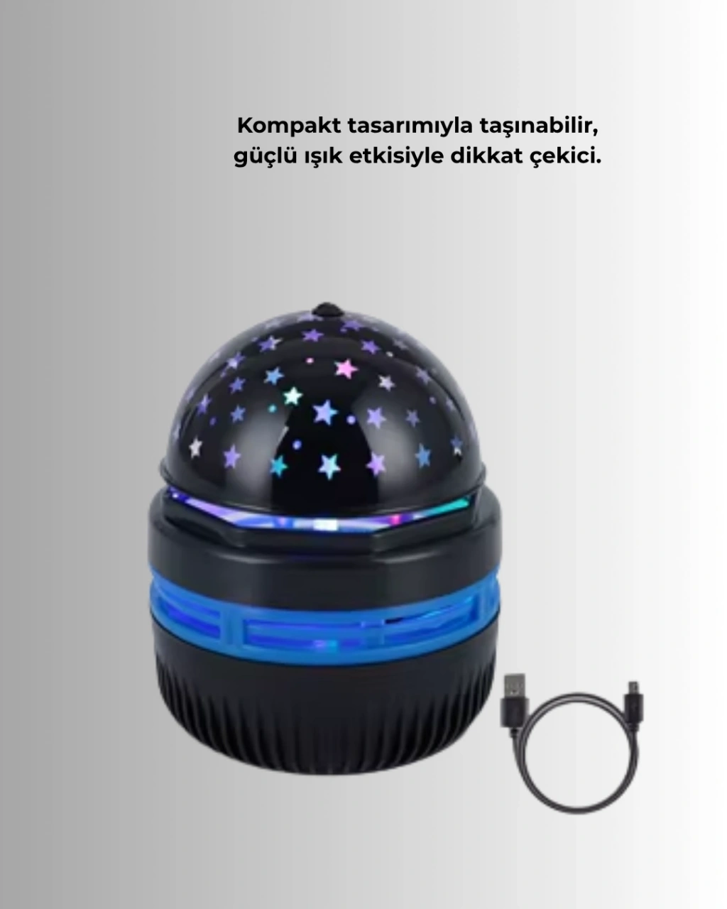 Bu projektörlü gece lambası, çocukların hayal gücünü geliştirirken uykuya dalmalarını kolaylaştırır. Tavanda dönen yıldızlar, gezegenler ve ay figürleriyle adeta bir galaksi içinde olduklarını hissettirir. Yumuşak ışığı gözleri yormaz, uyku öncesi sakinleştirici bir etki yaratır. Karanlıktan korkan çocuklar için ideal bir gece lambasıdır. Yetişkinler içinse romantik bir atmosfer yaratmak veya evde dinlenme köşenizi süslemek için harika bir seçimdir. 360 derece dönebilen yapısı, ışığın her köşeye eşit dağılmasını sağlar. USB girişiyle kolay kullanım sunar; priz, bilgisayar veya powerbank üzerinden çalışır. Kompakt boyutu (10x7x7 cm) sayesinde taşınabilir ve yer kaplamaz. Evinizde, ofisinizde veya seyahatlerde kullanabilirsiniz. Renkli ışık efektleriyle hem çocuklar hem yetişkinler bu lambaya bayılacak!