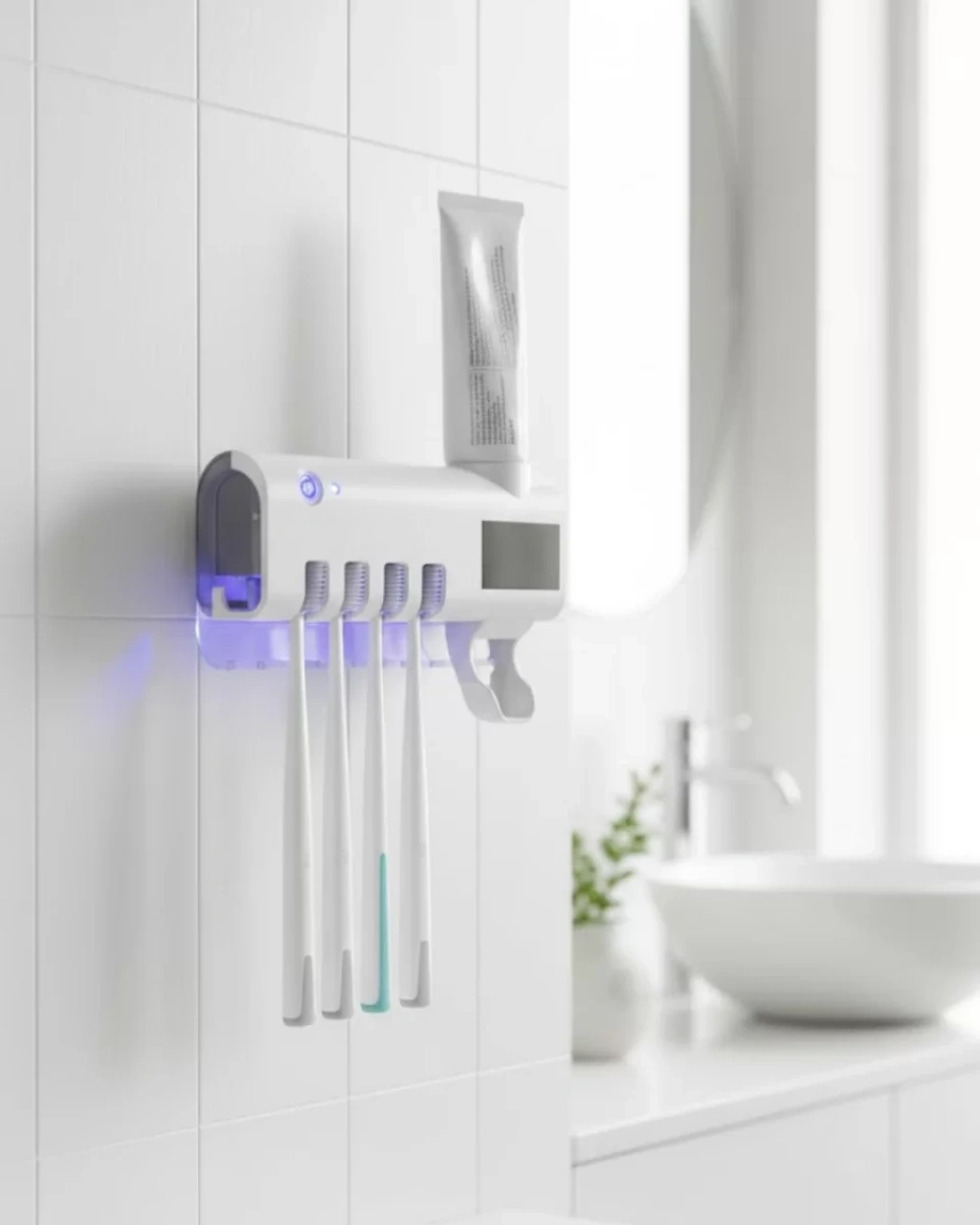 UV sterilizasyon teknolojisine sahip bu duvara monte diş fırçası tutucu, diş fırçalarınızı zararlı mikroorganizmalara karşı koruyarak maksimum hijyen sağlar. Sensörlü sistemi sayesinde diş fırçası yerleştirildiğinde otomatik olarak devreye girer ve manuel işlem gerektirmeden sterilizasyon işlemini başlatır. Şarj edilebilir yapısı kablo karmaşasını ortadan kaldırır ve banyoda pratik bir kullanım sunar. Duvar tipi montaj özelliği sayesinde tezgâh üzerinde yer kaplamaz ve düzenli bir görünüm oluşturur. Günlük ağız bakım rutininizi daha sağlıklı ve hijyenik hale getirir.