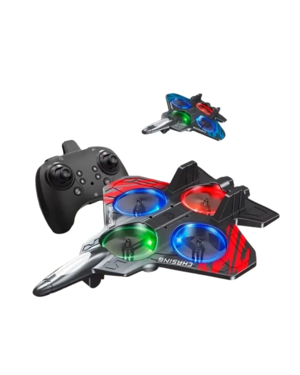 Uzaktan kumandalı LED ışıklı drone uçak, modern tasarımı ve eğlenceli uçuş özellikleri ile dikkat çeken bir oyuncak modelidir. Fighter jet şeklinde tasarlanan bu drone modeli, güçlü pervane sistemi sayesinde dengeli ve stabil uçuş performansı sunar.Drone üzerinde bulunan LED ışıklar uçuş sırasında görsel bir şölen oluşturur. Renkli ışık efektleri sayesinde özellikle akşam saatlerinde yapılan uçuşlar oldukça dikkat çekici hale gelir. Bu özellik çocukların ve kullanıcıların drone uçuşunu daha eğlenceli bir şekilde deneyimlemesine yardımcı olur.Uzaktan kumanda sistemi sayesinde drone üzerinde tam kontrol sağlanabilir. Kumanda üzerinden ileri, geri, sağa ve sola hareket ettirme işlemleri yapılabilir. Ayrıca drone'un sahip olduğu 360 derece dönüş özelliği sayesinde havada akrobatik hareketler gerçekleştirilebilir.Dayanıklı ve hafif gövde yapısı drone'un kullanım sırasında daha dengeli uçmasına yardımcı olur. Aerodinamik fighter jet tasarımı ise hem görsel açıdan dikkat çekici bir görünüm sunar hem de uçuş performansını destekler.Drone oyuncak hem çocuklar hem de yetişkin kullanıcılar için eğlenceli bir deneyim sunar. Özellikle teknoloji oyuncaklarına ilgi duyan kullanıcılar için keyifli bir aktivite aracı olabilir.Park, bahçe, açık alan veya geniş iç mekanlarda rahatlıkla kullanılabilen bu drone oyuncak, eğlenceli vakit geçirmek isteyen kullanıcılar için ideal bir seçenek sunar.