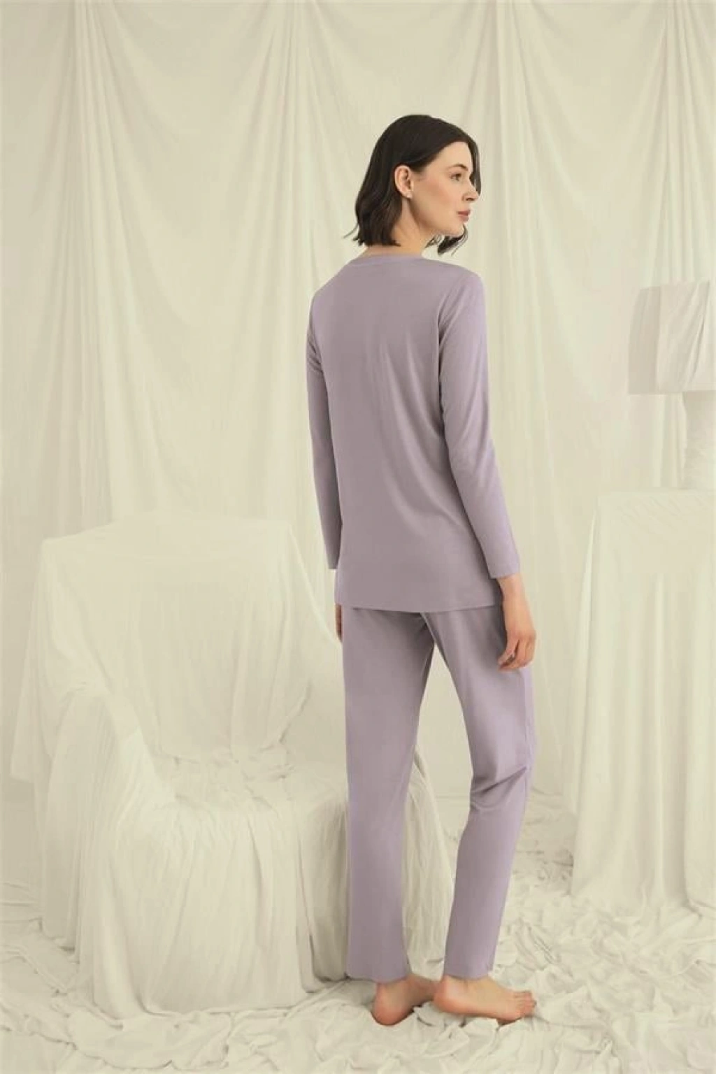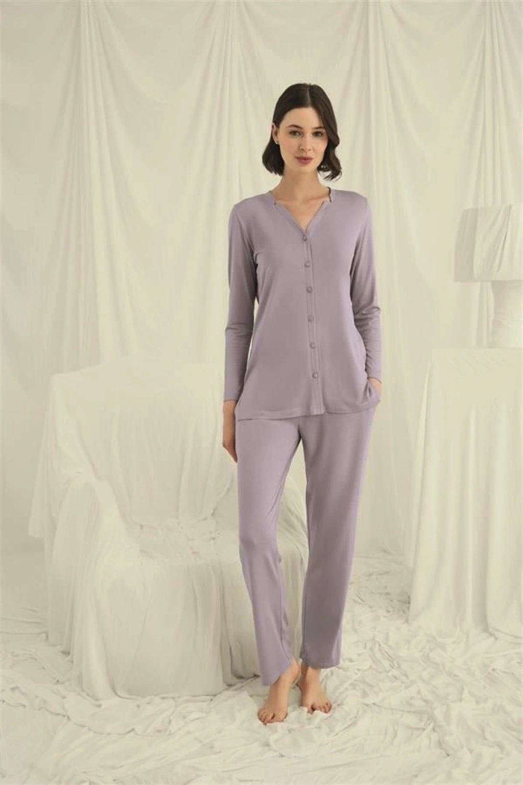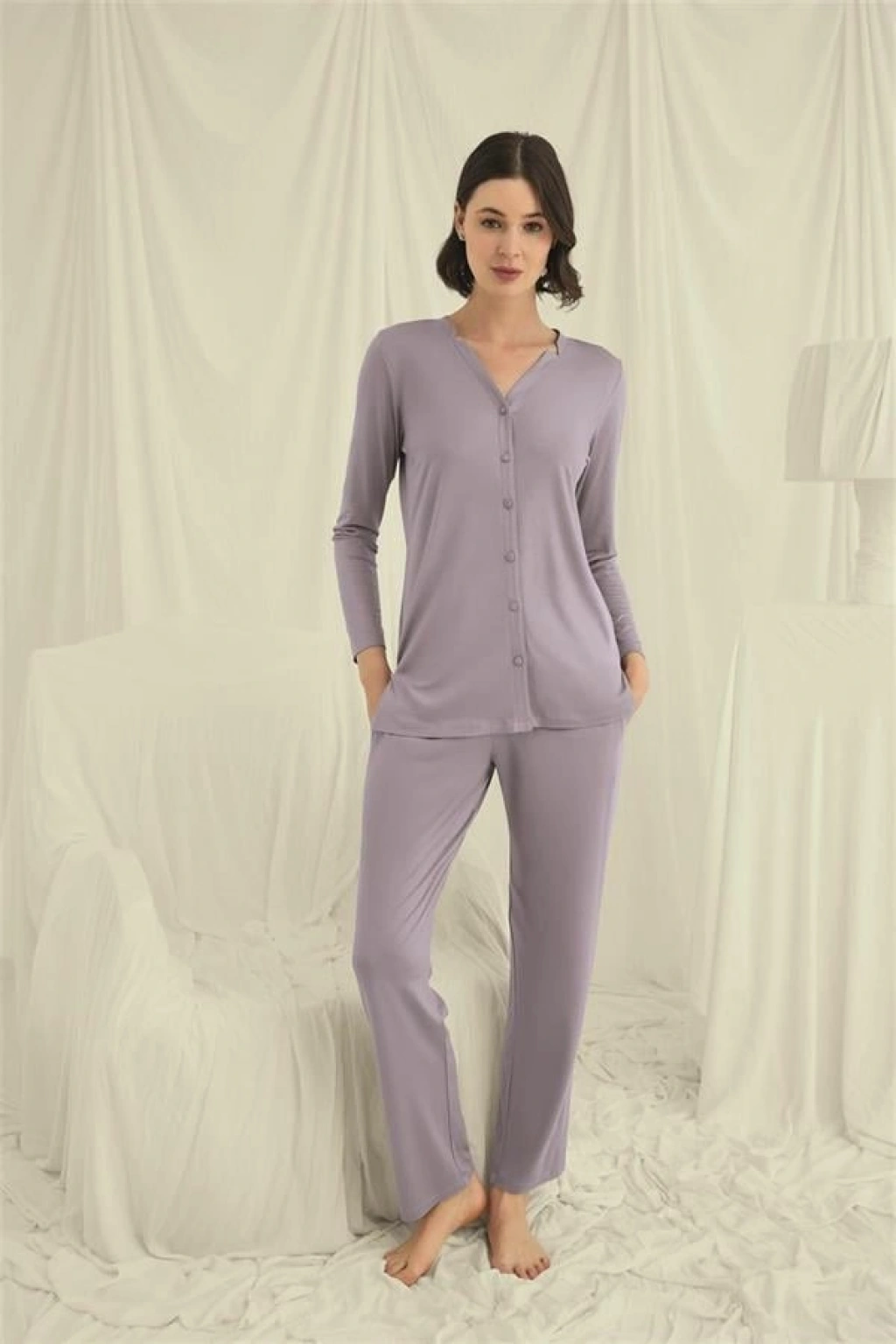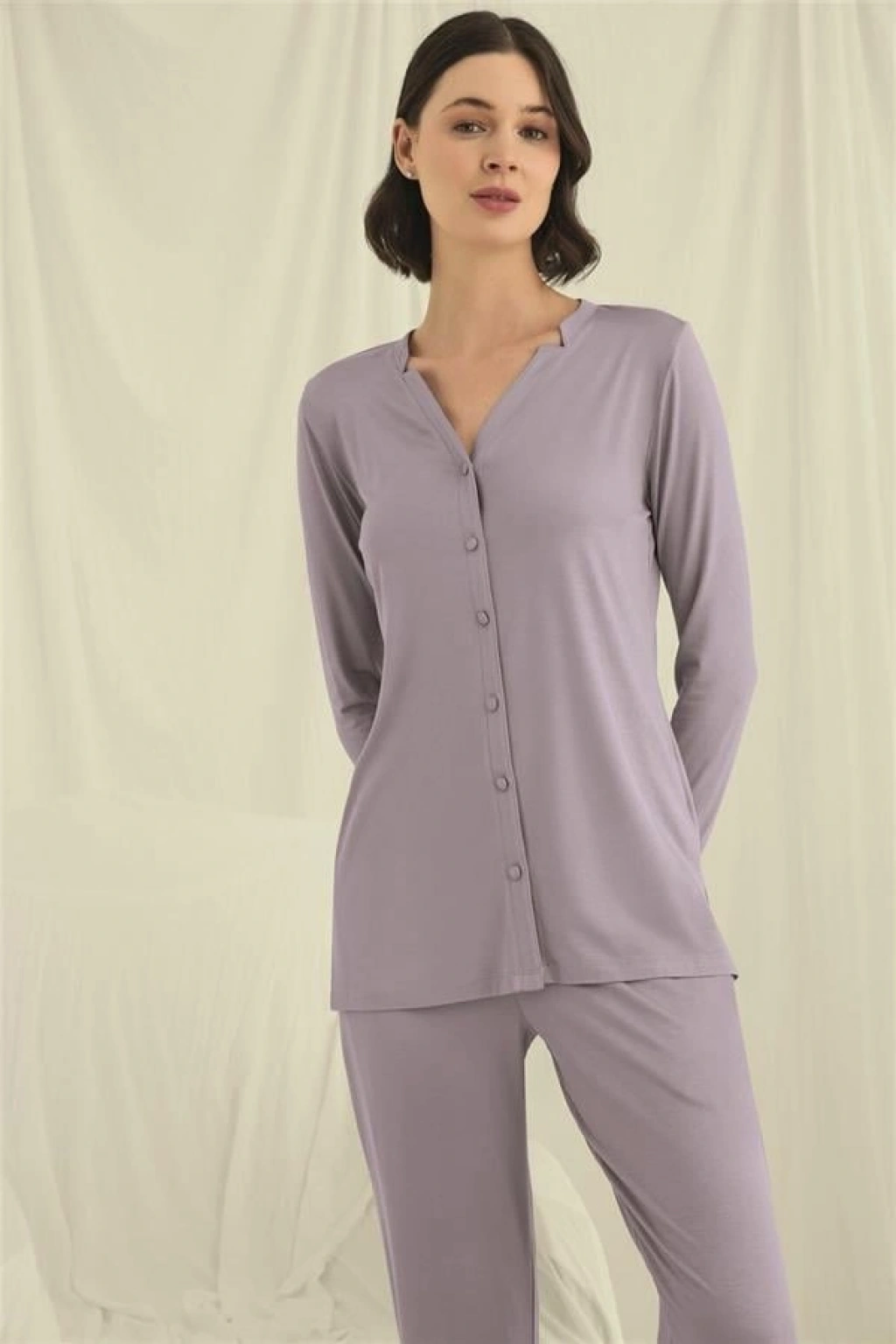 Üst: Gri renklidir, V yakalıdır, önü boydan düğmelidir, uzun kolludur, örme kumaştır.