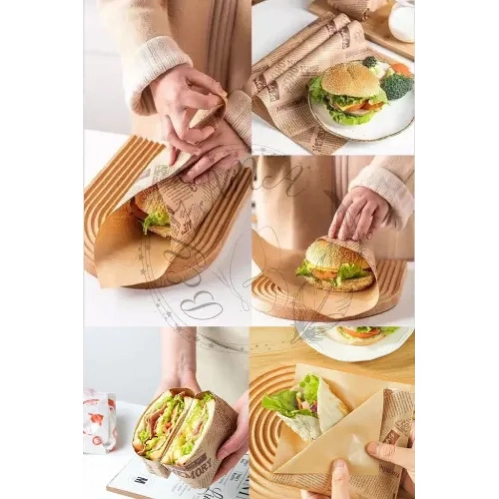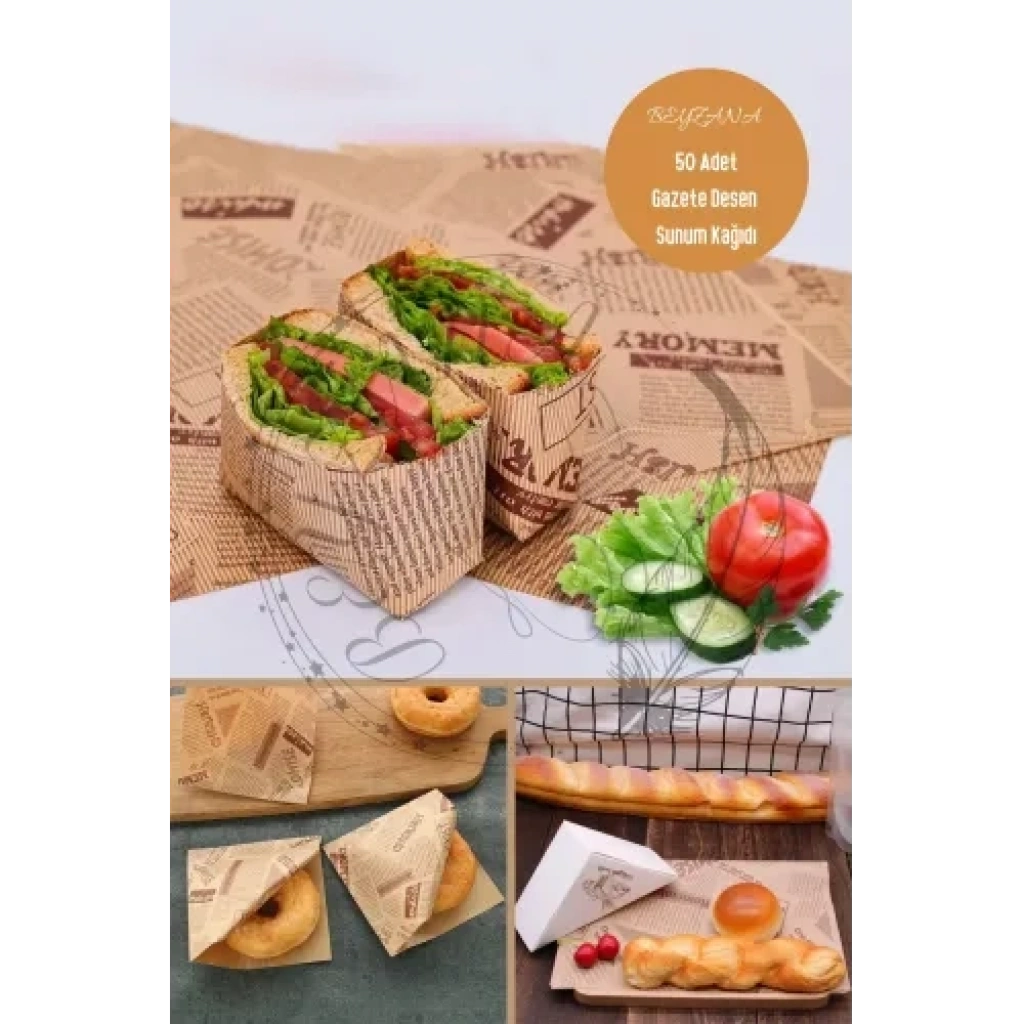 VINTAGE GAZETE DESENLİ SUNUM KAĞIDI 50 ADETZamansız Şıklık ve PratiklikYemek sunumunuza nostaljik bir dokunuş katın ve sunumlarınızı benzersiz kılın! Vintage gazete desenli sunum kağıdı, hem göz alıcı bir estetik sunar hem de kullanım kolaylığı sağlar. Bu özel tasarım yağlı kağıt, dayanıklı yapısı ve su geçirmez özelliği sayesinde sandviç, hamburger ve diğer lezzetli yiyeceklerinizi güvenle sararak sunmanızı mümkün kılar. Retro gazete desenleri ile sofralarınıza klasik bir hava katan bu ürün, aynı zamanda hijyenik ve gıda temasına uygun malzemelerden üretilmiştir.Yemek sunumu konusunda yenilikçi çözümler arayanlar için ideal olan bu sunum kağıdı, kafe, restoran ve ev kullanımı için mükemmel bir seçimdir. Sandviçlerinizi, kurabiyelerinizi ve diğer aperatiflerinizi bu şık kağıtlarla sarmak, misafirlerinize ve müşterilerinize unutulmaz bir deneyim sunmanızı sağlar. Kolayca katlanabilir ve kesilebilir yapısıyla pratik bir kullanım sunan vintage gazete desenli sunum kağıdı, aynı zamanda çevre dostu ve geri dönüştürülebilir materyallerden üretilmiştir.Sofralarınıza geçmişin büyüsünü taşıyan bu zarif ürün, stil ve işlevselliği bir araya getirerek, yemek sunumunuza farklı bir boyut kazandırır. Özel etkinliklerde, günlük sunumlarda ya da paket serviste rahatlıkla kullanabileceğiniz vintage gazete desenli sunum kağıdı, mutfağınızın vazgeçilmez bir parçası olacak. Nostaljinin şıklığını ve pratikliğini bir arada sunan bu eşsiz kağıtlarla, yemek sunumlarınızı sıradanlıktan çıkarın ve her anınızı özel kılın.Paket İçeriği50 adet vintage gazete desenli sunum kağıdı