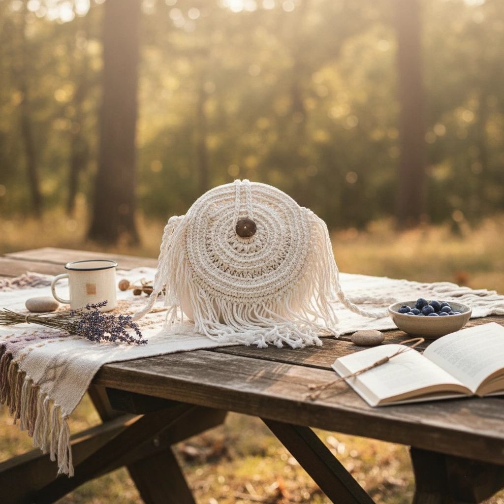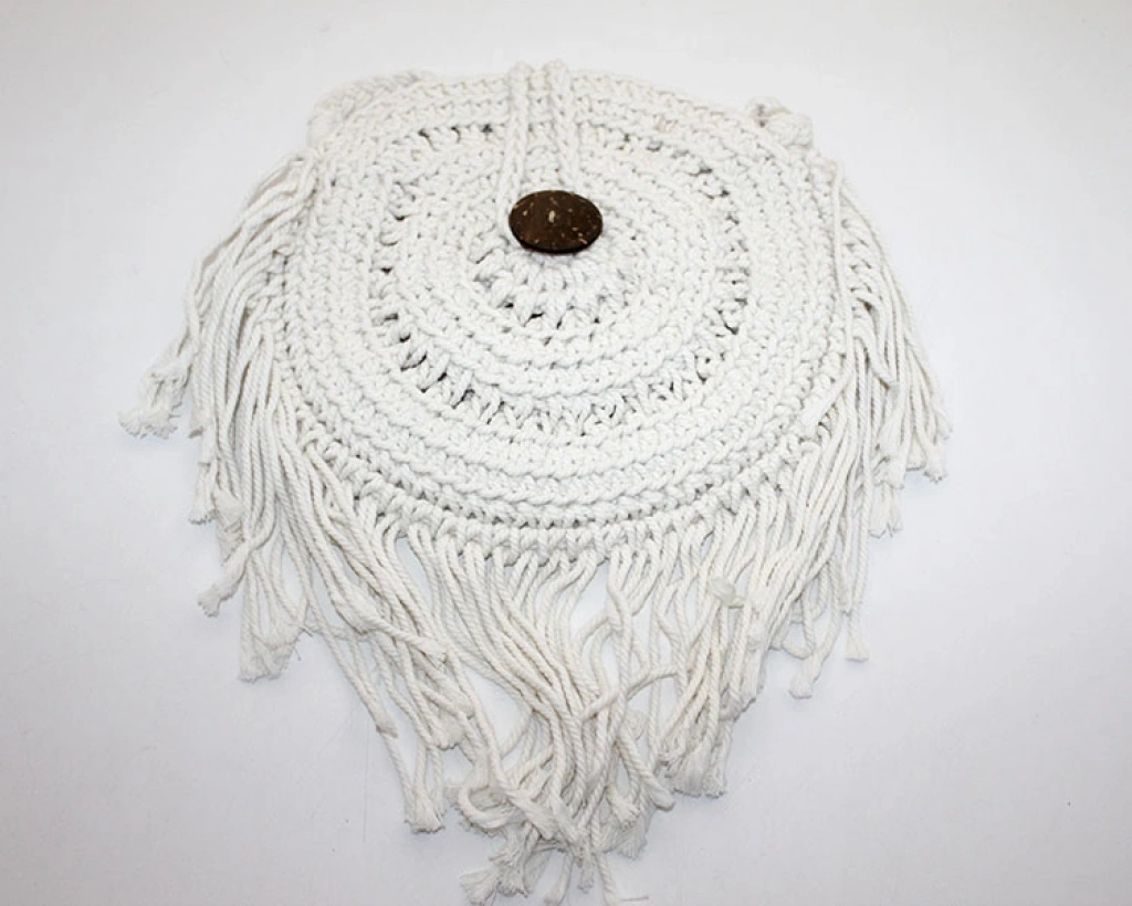 ÖzellikAçıklamaModelModel 6RenkBeyazTasarımÖrgü Desenli ve Püskül DetaylıÖlçüler27 x 27 cmMateryalDayanıklı Örgü MalzemeKullanım AlanıGünlük, Özel Günler ve Dekoratif KullanımYapıHafif, Ergonomik ve DayanıklıPaket İçeriği1 Adet Çanta Model 6 (Beyaz Örgü Püsküllü)