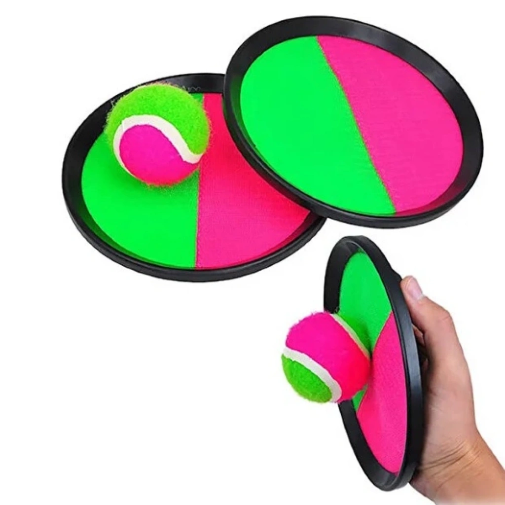 Cırtlı Yapışan Top Oyuncak Seti, hem çocuklar hem de yetişkinler için eğlenceli ve hareket dolu bir oyun deneyimi sunar. Dayanıklı cırt yüzeyi sayesinde top aparata kolayca yapışır ve oyun boyunca yüksek tutuş performansı sağlar. Açık alanlarda, parkta, sahilde veya bahçede aktif vakit geçirmek için ideal bir tercihtir.El koordinasyonu, refleks gelişimi ve motor becerilerini destekleyen bu set, aile oyunlarında ve çocuk aktivitelerinde keyfi artırır. Hafif yapısı sayesinde kolayca taşınabilir ve her yaş grubuna uygun eğlenceli bir oyundur. 2 kişilik kullanım için tasarlanan set, arkadaşlar ve aile bireyleri arasında rekabetli ve eğlenceli anlar yaratır. Paket İçeriği2 adet cırtlı tutma aparatı1 adet top