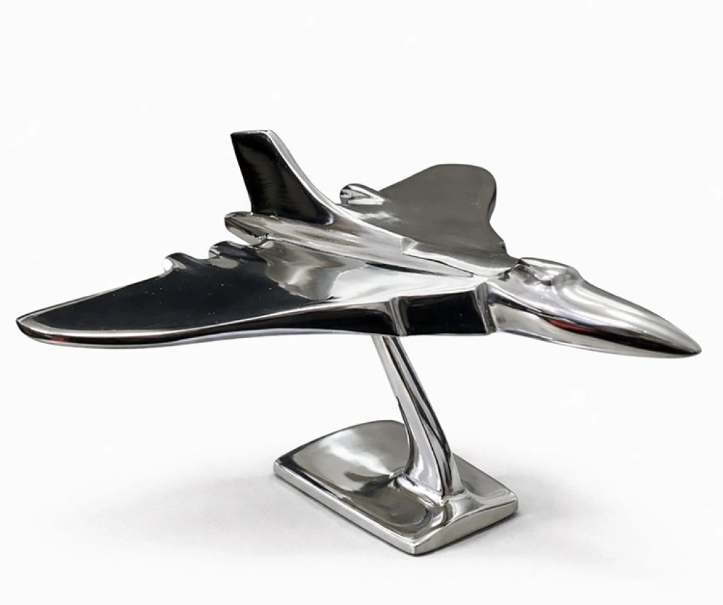 Vulcan Krom Uçak, havacılık tarihinin en etkileyici tasarımlarından biri olan stratejik bombardıman uçağı Vulcan'ın ikonik delta kanat yapısını modern bir estetikle buluşturuyor. 20x13 cm boyutlarındaki ideal formu, uçağın fütüristik ve güçlü hatlarını büyük bir hassasiyetle yansıtır. Yüksek kaliteli krom kaplama sayesinde elde edilen ayna efektli pürüzsüz yüzeyi, bulunduğu her ortamda ışığı mükemmel şekilde kırarak sofistike bir şıklık sunar. Ürünün altına entegre edilen eğimli estetik stand yapısı, uçağın dinamik bir uçuş pozisyonunda sergilenmesini sağlayarak tasarıma derinlik kazandırır. Bu dekoratif Vulcan modeli, dayanıklı metalik malzemesi ile uzun ömürlü bir kullanım vaat ederken, pürüzsüz işçiliği ile premium bir aksesuar hissi uyandırır. Hem ofis masaları için prestijli bir simge hem de havacılığa ilgi duyan sevdikleriniz için unutulmaz bir hediyelik eşya seçeneği olan bu krom uçak biblosu, zamansız tasarımıyla modern ve klasik dekorasyon stillerine kolayca uyum sağlar. Ürün Teknik Özellikleri ÖzellikAçıklama Ürün AdıVulcan Krom Uçak Boyut20x13 cm MalzemeKrom Kaplama Yüksek Kaliteli Metalik Malzeme Tasarımİkonik Delta Kanat Vulcan Formu - Standlı RenkParlak Gümüş / Krom StilModern / Endüstriyel / Havacılık Temalı Kullanım AlanıOfis, Çalışma Masası, Kütüphane, Vitrin Paket İçeriği1 Adet Vulcan Krom Uçak