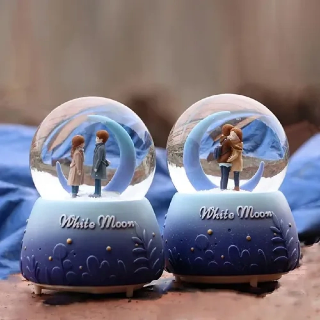 Tasarım: Romantik çift ve beyaz ay temalı figür içeren kar küresi.Boyut: Orta Boy (Kompakt ve masaüstü kullanıma uygundur).Taban: "White Moon" yazısı, yaprak ve yıldız motifleri bulunan, genellikle mavi/beyaz renk geçişli dekoratif taban.Özellikler: Sallandığında kar/parıltı efekti oluşur. Malzeme: Kaliteli cam küre ve dayanıklı plastik taban malzemesinden üretilmiştir.Teması: Nostaljik ve romantik bir dokunuş sunar.Kullanım AlanlarıYatak Odası ve Salon: Romantik ve huzurlu bir dekorasyon objesi olarak.Hediye Seçeneği: Evlilik yıl dönümü, Sevgililer Günü, nişan veya doğum günü gibi özel günlerde sevgiliye/eşe sunulacak en popüler ve anlamlı hediyelerdendir.Dekorasyon: Vitrin, raf veya komodin üzerinde nostaljik ve dikkat çekici bir köşe oluşturmak için.Koleksiyon: Kar küresi koleksiyonerleri için özel bir temaya sahip parçadır.Paket İçeriği1 Adet White Moon Kar Küresi (Orta Boy).