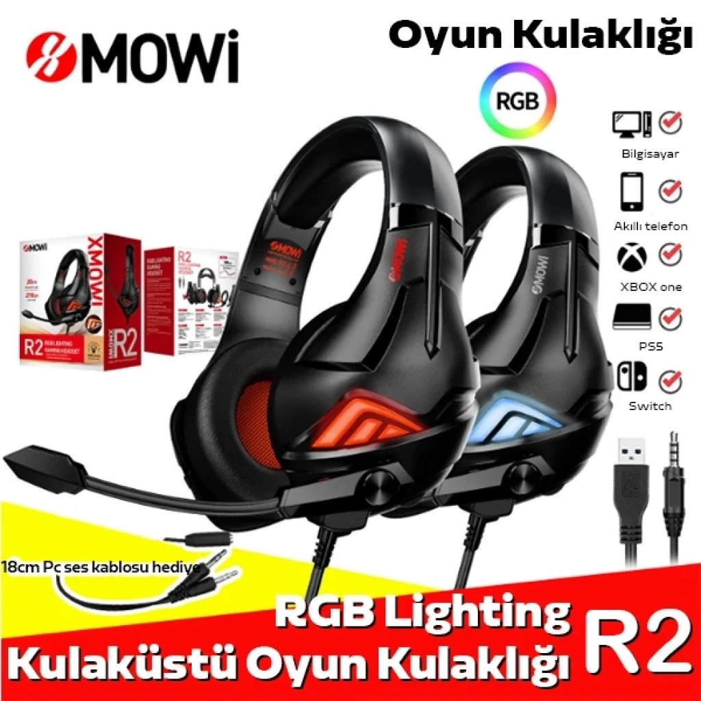 XMOWi R2 Gaming Mikrofonlu RGB Oyuncu Kulaklılığı Gurultu Engelleyici Kulaklik