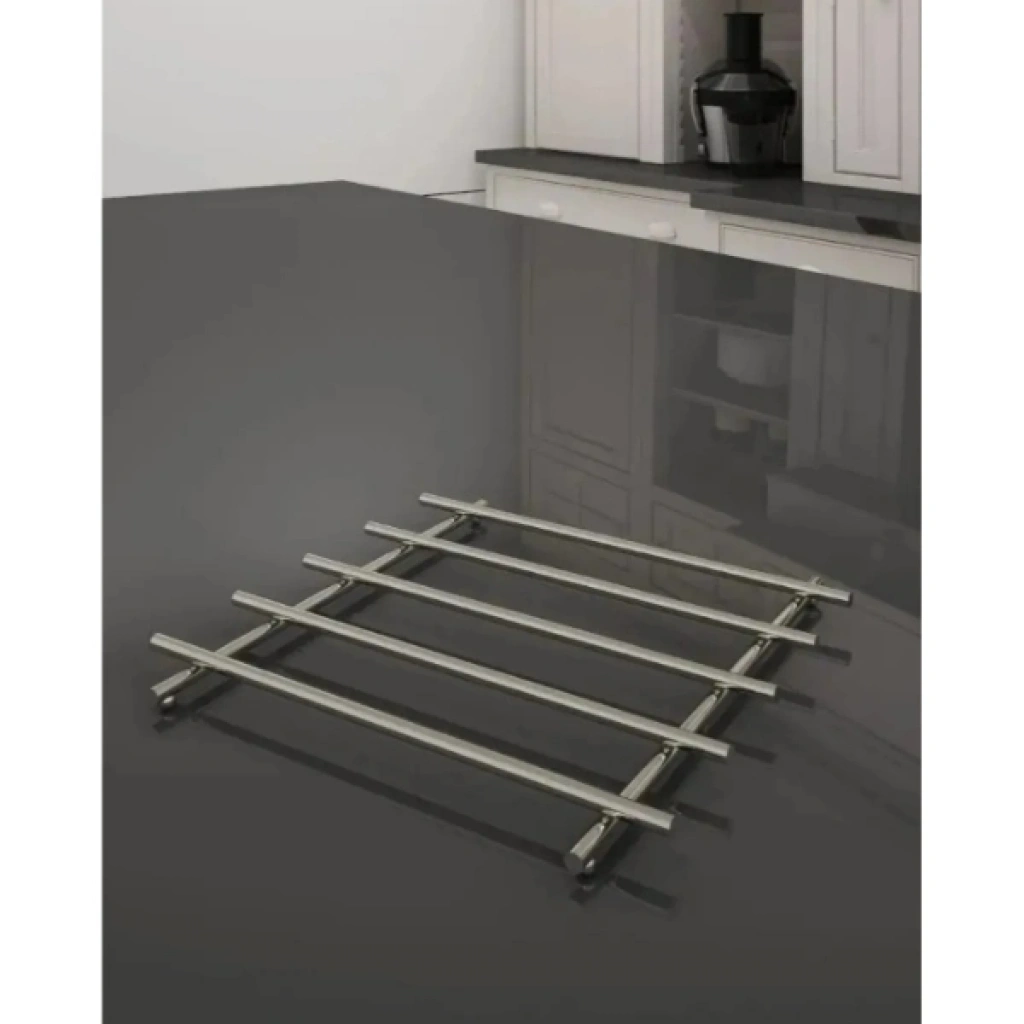 Modern tasarımıyla dikkat çeken bu yanmaz paslanmaz çelik nihale, yüksek ısıya dayanıklı yapısı sayesinde sıcak tencerelerinizi, tavalarınızı ve çaydanlıklarınızı güvenle tezgâh üzerine koymanıza olanak tanır. Krom renkli dış yüzeyi mutfak dekorasyonuna şıklık katarken, paslanmaz çelik malzemesi sayesinde uzun ömürlü kullanım sağlar. 20x20 cm boyutundaki kare formu, hem büyük hem küçük kaplar için ideal bir kullanım alanı sunar. Alt kısmındaki silikon kaydırmaz ayaklar sayesinde yüzeye zarar vermez ve kaymayı önler. Hem işlevsel hem de estetik açıdan mutfakta vazgeçilmez bir yardımcıdır. Paket İçeriği1 Adet Yanmaz Paslanmaz Çelik Nihale