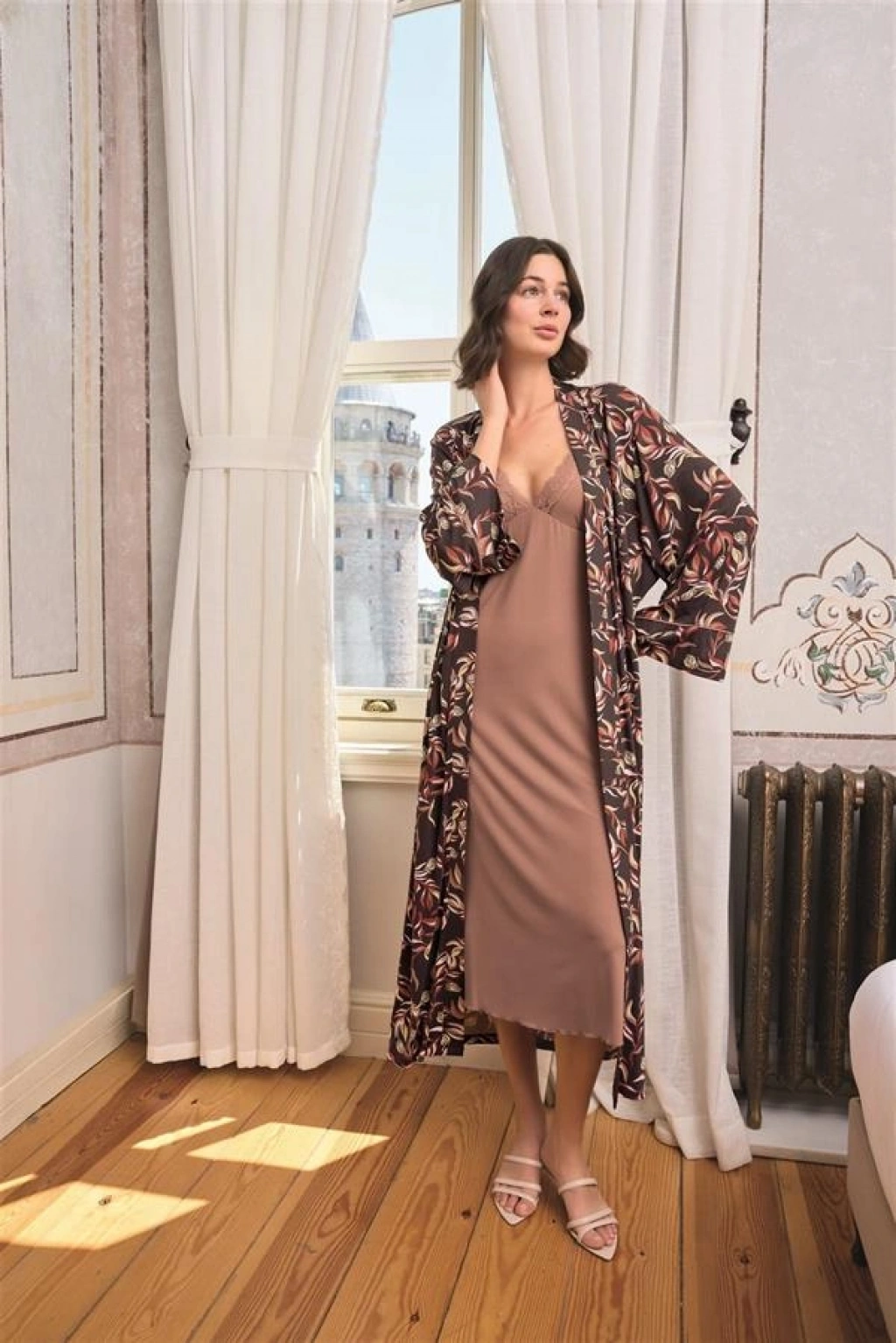 Sabahlık: Kahverengi zemin üzerine yaprak desenlidir, kuşaklıdır, büyük bedendir, örme kumaştır.