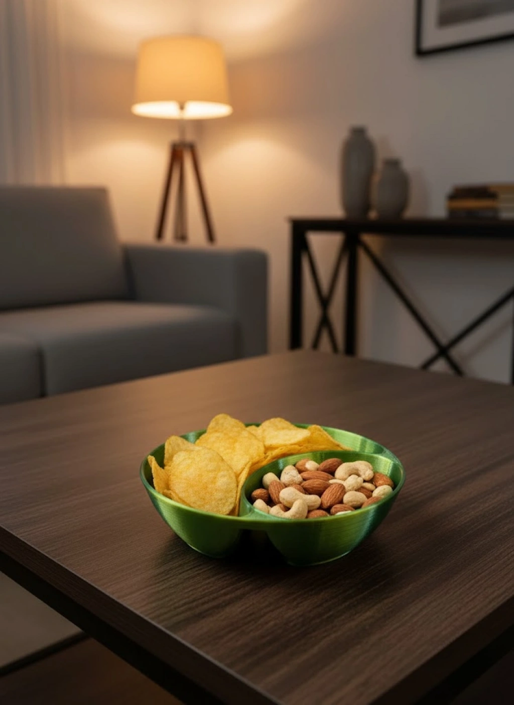 Yeşil çerezlik kase seti, doğal rengi ve sade tasarımıyla salon ve masa üstü sunumlarına ferah bir görünüm kazandırır. 3x12 cm ölçüsündeki kaseler, çerez, kuruyemiş ve atıştırmalıklar için ideal boyuttadır. 4 adetlik set içeriği sayesinde hem günlük kullanımda hem de misafir ağırlarken rahatlıkla tercih edilebilir.Bölmeli yapısı, farklı çerez türlerinin aynı kase içinde düzenli şekilde sunulmasına olanak tanır. Çerezlerin birbirine karışmasını önler ve masa üzerinde düzenli bir sunum oluşturur. Yeşil rengi, özellikle loş ama aydınlık salon ortamlarında doğal ve sakin bir atmosfer yaratır.Salon masası, sehpa veya TV ünitesi üzerinde kullanıma uygundur. Hafif ve pratik yapısı sayesinde kolay taşınır. Hem işlevsel hem de dekoratif bir çerezlik seti arayanlar için ideal bir tercihtir.