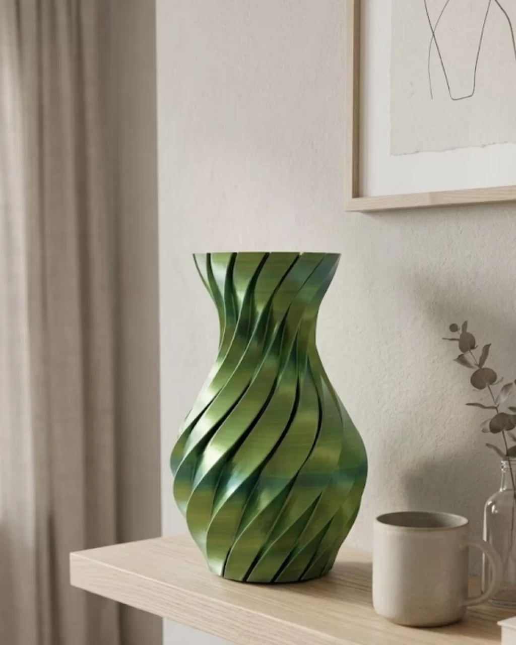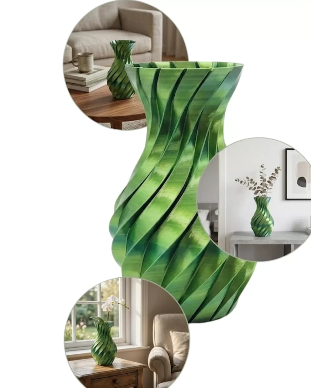 Şıklığı ve modern tasarımı bir araya getiren 3D spiral yeşil vazo, dekorasyonunda fark yaratmak isteyenler için özel olarak üretilmiştir. Kıvrımlı ve hareketli yüzeyi sayesinde ışığı farklı açılardan yansıtarak bulunduğu ortama derinlik ve canlılık katar. Yeşilin doğal tonları, mekâna sakinlik ve doğallık hissi kazandırır.Fonksiyonel kullanım sunan bu vazo, hem çiçeklerle hem de tek başına dekoratif obje olarak kullanılabilir. Kurutulmuş çiçekler, pampas veya yapay çiçeklerle kombinlendiğinde çok daha etkileyici bir görünüm oluşturur. Modern ev dekorasyonu, ofis tasarımı ve minimalist yaşam alanları için mükemmel bir tamamlayıcıdır.Dayanıklı yapısı sayesinde uzun ömürlü kullanım sağlar. Şık görünümü ile aynı zamanda sevdiklerinize hediye edebileceğiniz zarif ve kullanışlı bir alternatiftir.