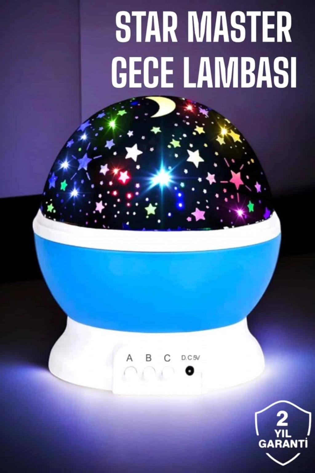Star Master Yıldızlı Gökyüzü Projeksiyon Gece Lambası, evinizde adeta bir gökyüzü yaratır. Mavi ve mor ışık döner yapısı sayesinde, odanızın tavanına yıldızlar, gezegenler ve ayın büyüleyici görüntülerini yansıtarak gerçek bir yıldızlar geçidi atmosferi sunar. Bu projeksiyon lambası, özellikle çocuklar için büyük bir rahatlık sağlar, çünkü karanlıktan korkan çocukların uyumasını kolaylaştırır ve gece boyunca huzur verir. Gözleri rahatsız etmeyen ve yumuşak ışık seviyeleriyle tasarlanan Star Master, aynı zamanda odanıza zarif bir ambiyans katarken, direkt ışık vermez. Işığın rengini ve seviyesini kolayca ayarlayarak, ihtiyacınıza göre atmosferi kontrol edebilirsiniz. Döner yapısı sayesinde, ışık hareketli yıldızlar ve gezegenler gibi bir atmosfer yaratır, böylece tavanınızda sürekli değişen bir manzara ortaya çıkar. Üzerindeki şeffaf üst kapak, isterseniz ışığı tavana yansıtmanıza veya farklı bir yöne yönlendirmenize olanak tanır. Ayrıca, 4 adet AAA pil ile çalışması sayesinde kablo derdini ortadan kaldırır ve istediğiniz her yerde kullanma kolaylığı sunar. Star Master, hem estetik hem de işlevsel özellikleriyle odanızda eşsiz bir atmosfer yaratmak için ideal bir tercihtir.